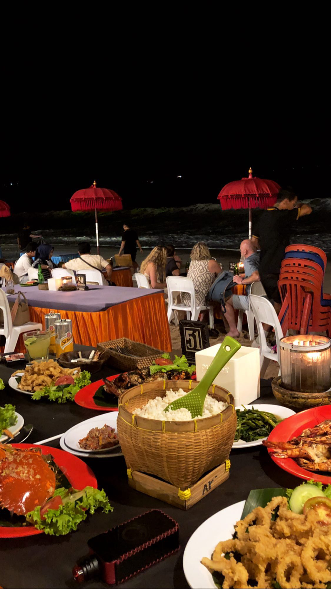 • Dinner at Jimbaran Bay Beach: Enjoy a fresh seafood dinner by the beach, with the sound of waves and a stunning sunset view.